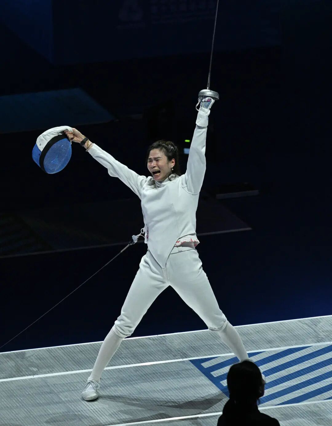 “滴!”当女子重剑个人赛的金牌争夺战落下帷幕,参加了四届全运会的福建老将林声躬身呐喊。她再度抬起脸庞,已是热泪盈眶,泪水止也止不住。